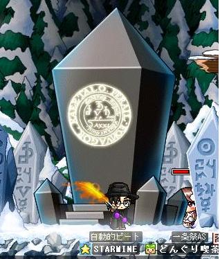 クイズを出す石の所に到着 (端っこに何か居ます)