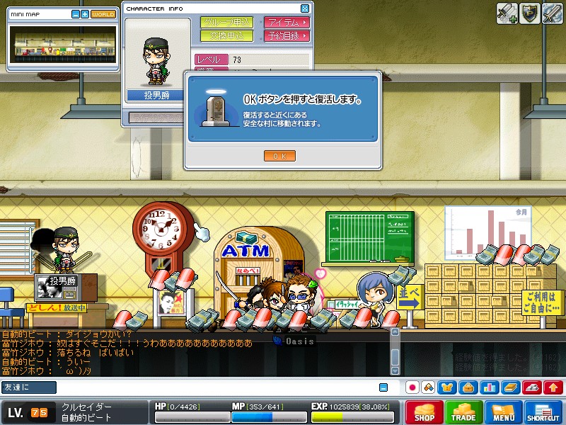 楓死神「あと10%でLV70だぜい ちょっとINできるか?」